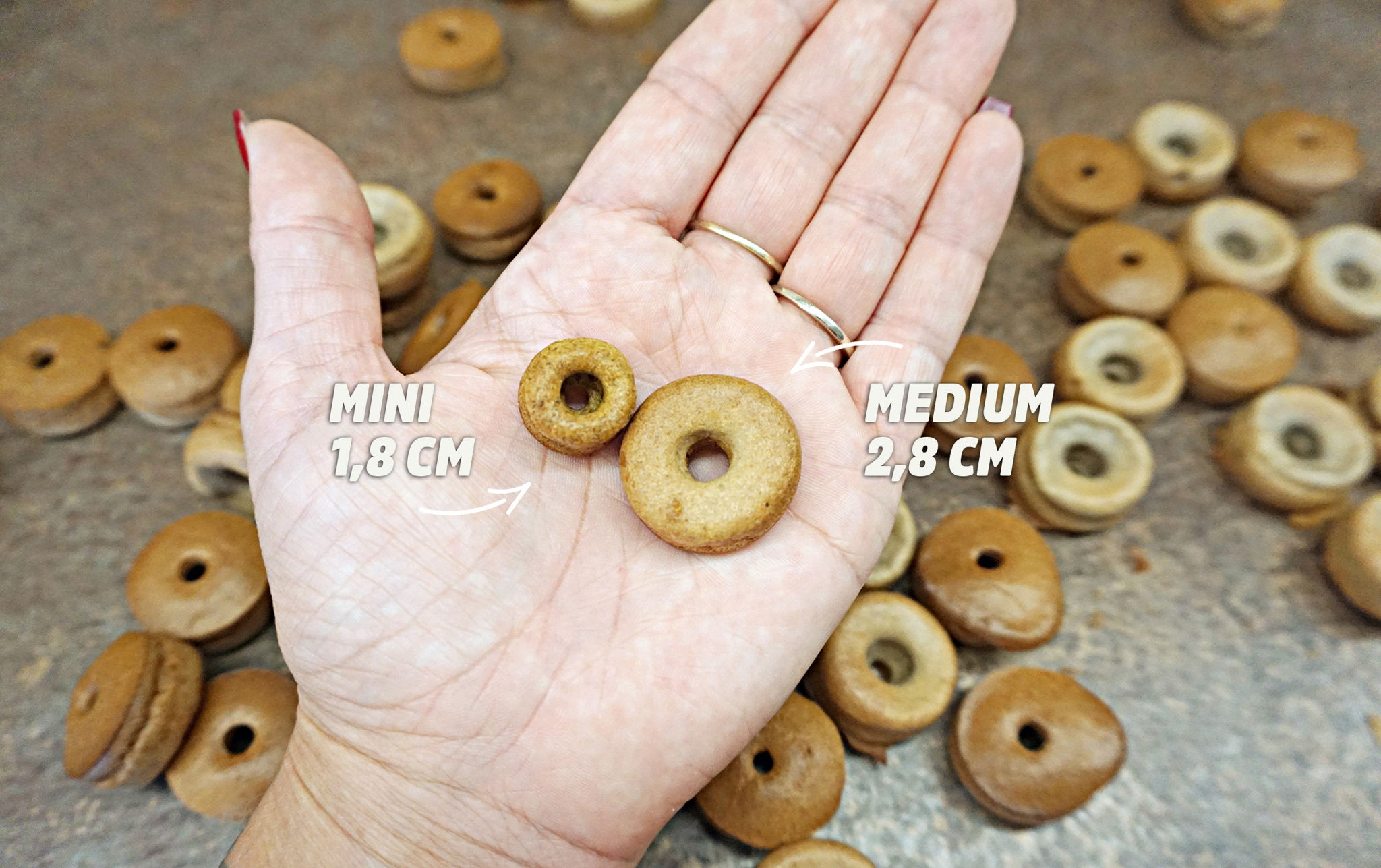 Medium (Ø 2,8 cm) – perfekt für große Hunde oder als kleine Knabberei zwischendurch für kleine oder mittelgroße Hunde.